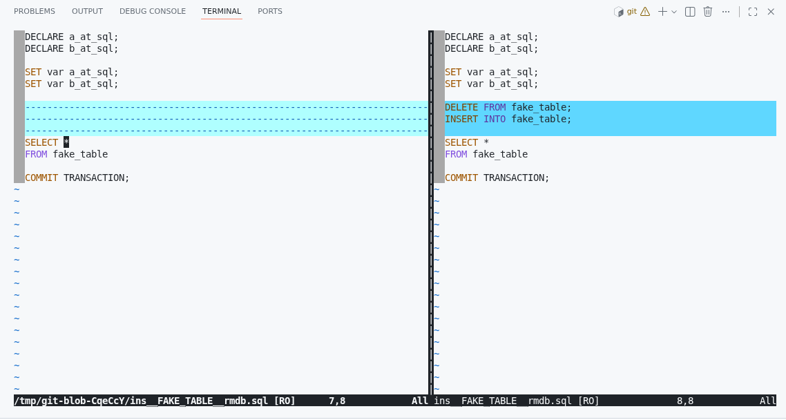$ git difftool HEAD -- ins__FAKE_TABLE__rmdb.sql